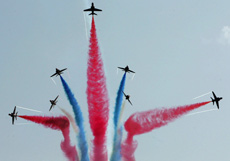 قال مسؤولون بوزارة الدفاع البريطانية اليوم ان طائرة من طراز ريد آرو (السهم الأحمر) تحطمت بعد مشاركتها في عرض جوي. وسقطت الطائرة على الارض بالقرب من مطار بورنماوث في دورست بجنوب انجلترا بعد المشاركة في مهرجان طيران البلدة. وقال متحدث باسم وزارة الدفاع البريطانية "يمكننا ان نؤكد اننا على علم بوقوع حادث لطائرة من طراز ريد آرو ونحن نحقق في الأمر". وقالت شاهدة عيان انها شاهدت طائرات (ريد آرو) تكمل العرض الخاص بها دون أي مشاكل مشيرة الى أن العرض استمر "نحو عشر دقائق". وتستخدم طائرات (ريد آرو) نظام التحكم الزوجي (بي آيه أي) المزود في طائرات (هوك تي 1).
